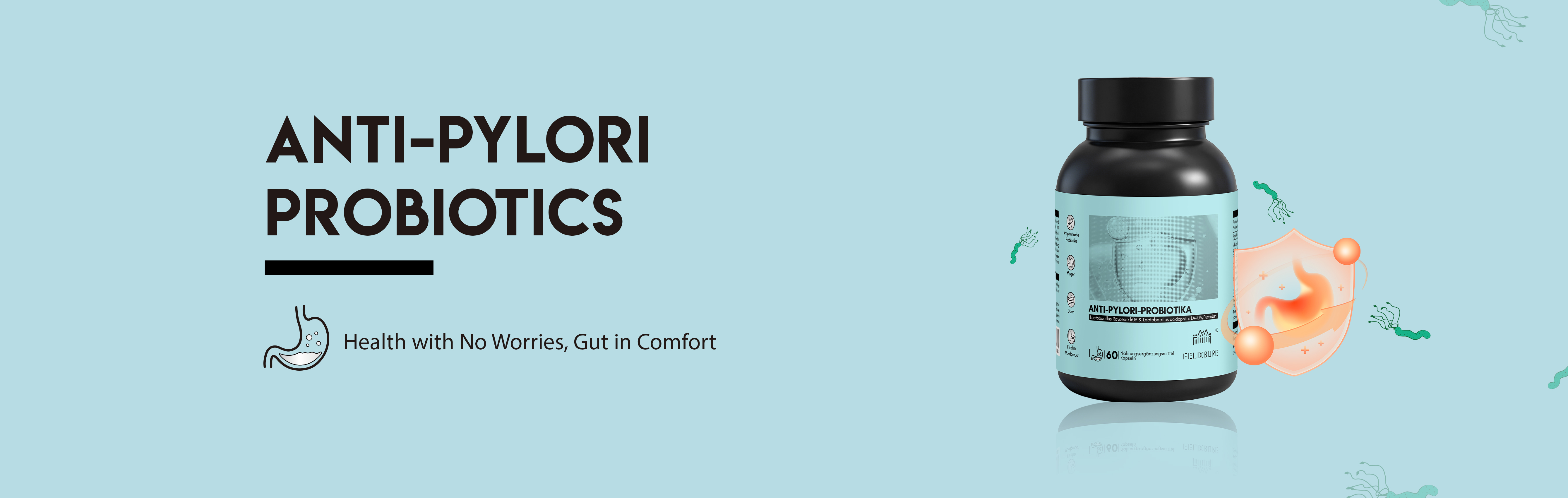 Centered on microbiome regulation, ANTI-PYLORI PROBIOTICS Capsules integrate targeted antibacterial action, mucosal repair, and antioxidant defense — three scientifically backed approaches into a comprehensive, full-spectrum protection plan specifically designed for modern gastric health.